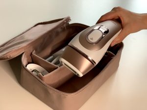 Když otevřete krabici, uvidíte designově velmi povedený cestovní obal, do kterého je uložen celý obsah balení. Pokud jde o náhradní hlavice, tak jedna má menší plochu a je určena pro epilaci záhybů pokožky nebo také pro citlivá místa. Druhá hlavice má větší plochu a hodí se na nohy a podobně. Základní hlavice je samozřejmě součástí epilátoru již při vybalení a má normální/standardní velikost.