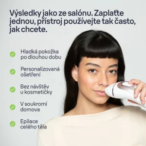 Při pravidelném používání lze dosáhnout hladké pokožky již během prvního roku. Skvělá je vestavěná ochrana pokožky a UV filtr, díky čemuž je použití maximálně bezpečné. Výhodou je i maximální výkon a rychlost záblesků, navíc je k dispozici speciální hlavice. IPL epilátor Braun Smart Skin i·expert PL7147 má životnost až 400 000 záblesků.