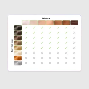 • Není vhodný pro všechny barvy pokožky a chloupků