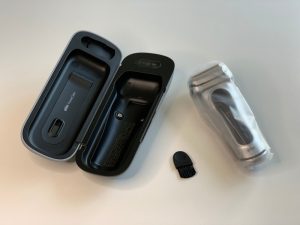 Vedle holicího strojku je v krabici i různé příslušenství. Perfektní je zejména přenosné dobíjecí pouzdro, které má svůj vlastní konektor pro napájení, stejně jako integrovanou baterii. Jeho součástí je i čisticí štěteček.