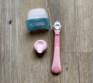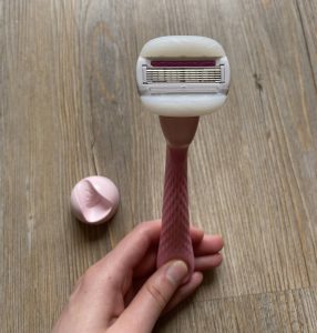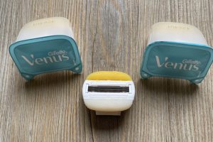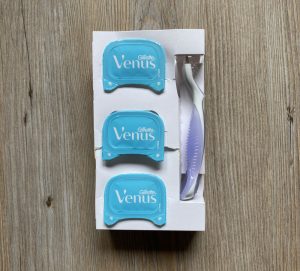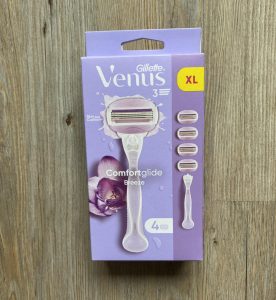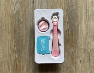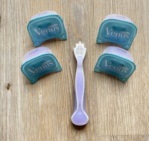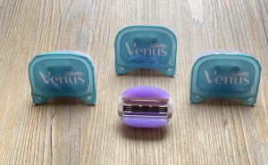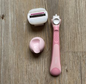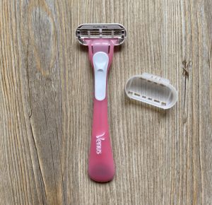 Ukázka holicího strojku s vyměnitelnou hlavicí Venus Comfortglide Breeze
