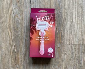 Ukázka holicího strojku s vyměnitelnou hlavicí Venus Comfortglide Sugarberry Scebted Miami
