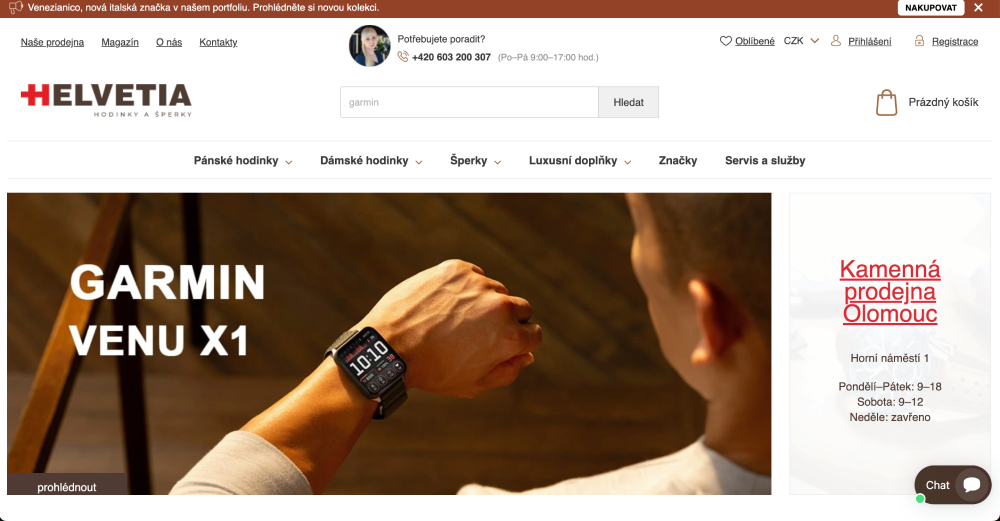 Dovozu a prodeji značkových hodinek se pan Vlastimil Nesvadba, zakladatel a majitel obchodu Helvetia-hodinky.cz, věnuje již 30 let. K velkoobchodnímu prodeji a výhradnímu dovozu hodinek značek Casio, Orient, Esprit či TAG Heuer se pan Nesvadba rozhodl v roce 2011 otevřít i vlastní kamennou prodejnu, a to v srdci Olomouce.
