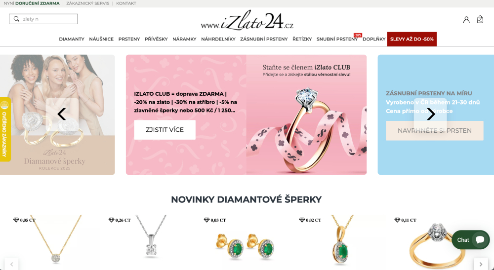 E-shop iZato24.cz je internetové zlatnictví, které patří mezi největší v České republice. Obchod nabízí několik tisíc položek originálních šperků, exkluzivní kolekce i nejžhavější modely a novinky. Kromě prodeje šperků vám e-shop zhotoví zdarma rytinu dle vašeho přání do libovolných vybraných šperků.